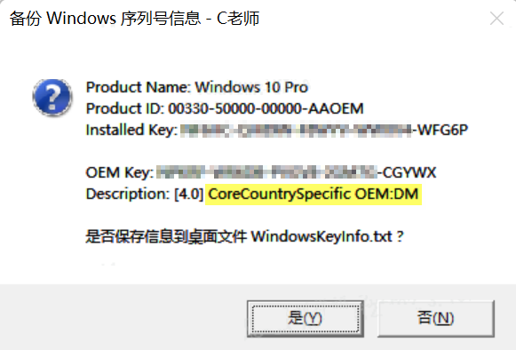 - [4.0] CoreCountrySpecific OEM:DM 表示这个序列号可激活家庭中文版。
