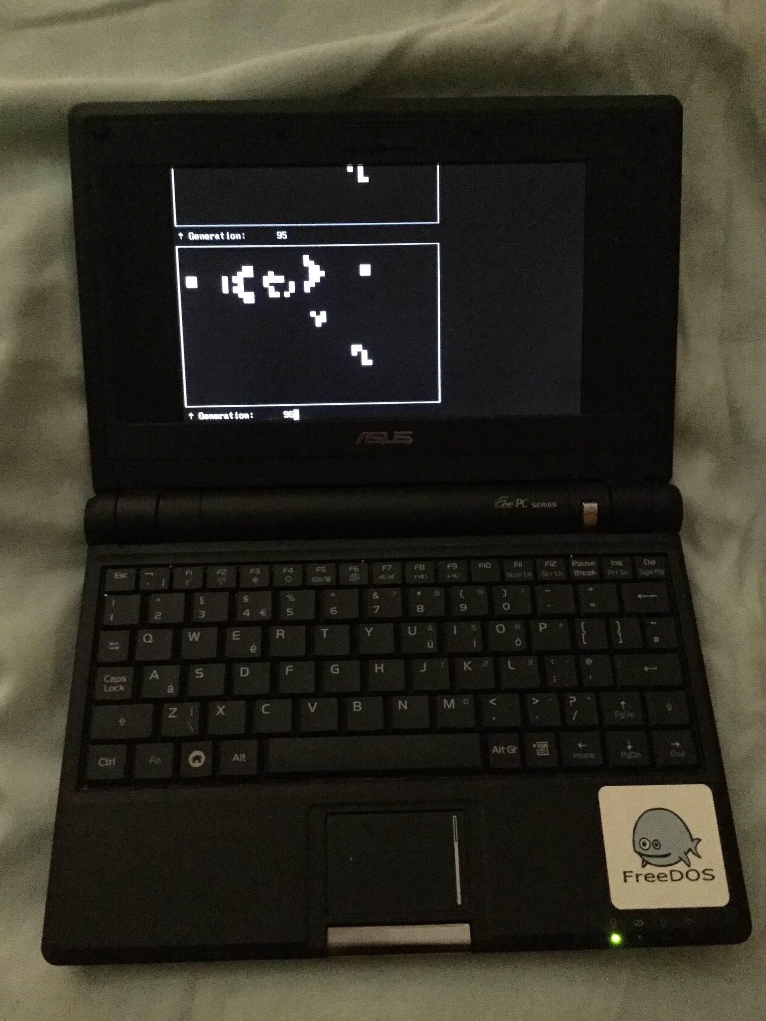 This is a fairly simple implementation of Conway's Game of Life, written in Fortran 77 for the Open Watcom compiler on FreeDOS, but which also compiles on GFortran on Linux.