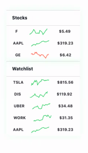 Creating the watchlist and aligning symbols, graphs and prices were done by the implementation of multiple calls to the Yahoo Finance API and formatted with flexbox in CSS. The API only allows for 5 calls/seconds. We were able to overpass this issue by implementing setTimeout functions that delayed the multiple calls by a second. Finally we were able to generate the list of stocks owed and watchlist from the portfolio page.