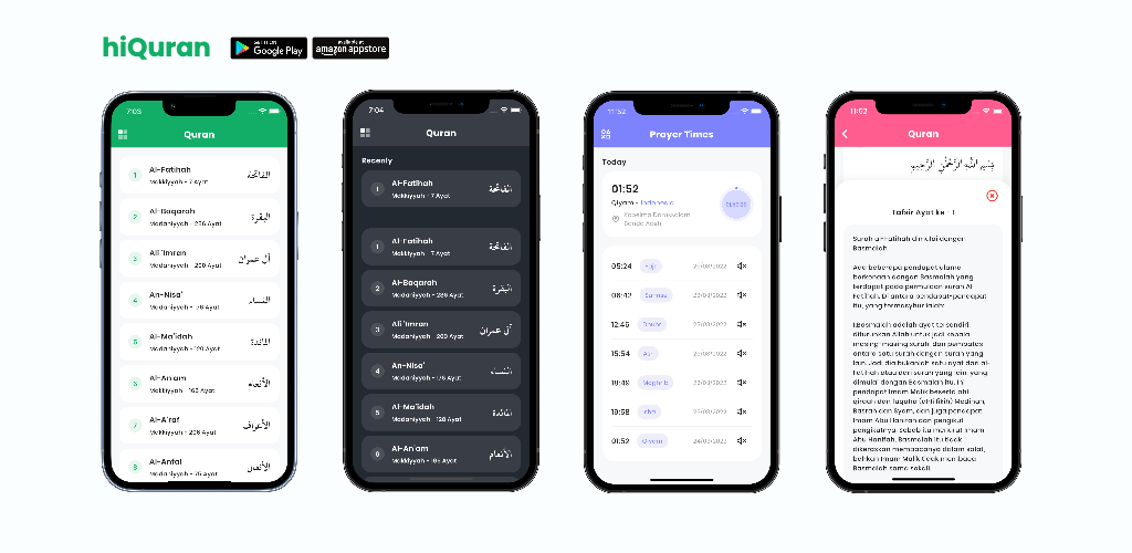 hiQuran is an application for the life of a Muslim with the Qur'an as the center. We tried to make it a very user-friendly application with a beautiful design and useful for Muslims, we hope you like it.