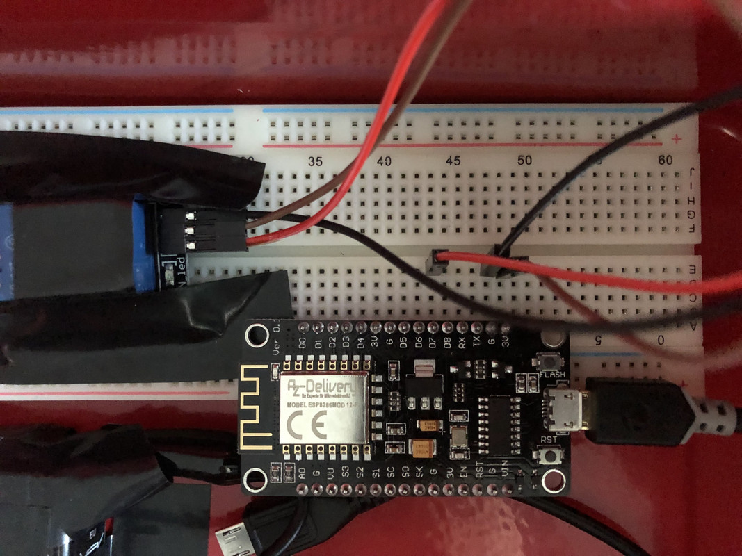 - Connect you output pin from the EPS8266 (In my case i connected the D7) from the breadboard to the Relay signal pin.