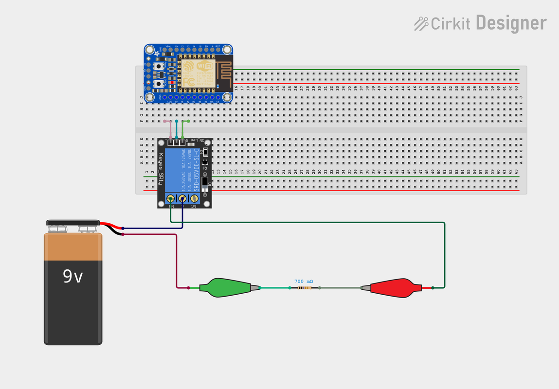- Connect a tiny bit of nichrome wire 5/10 cm to the negative alligator clamp and the other side to the positive coming from the relay.