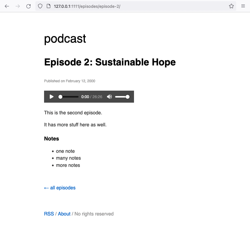 Simple Zola-based podcast website, designed for fans of self-hosted-ness.