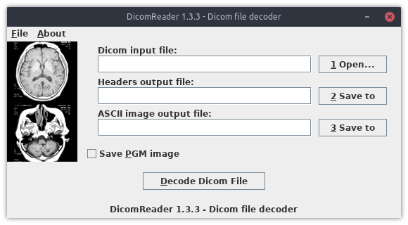 If a pgm image is also desired, its name is automatically generated from the ascii text image’s file name. - DicomReader needs a Dicom dictionary in order for it to work, where it can read Dicom tags from and take the correct action for each of them, accordingly.