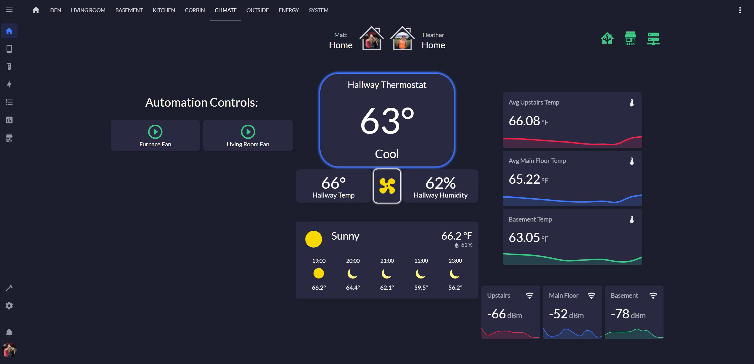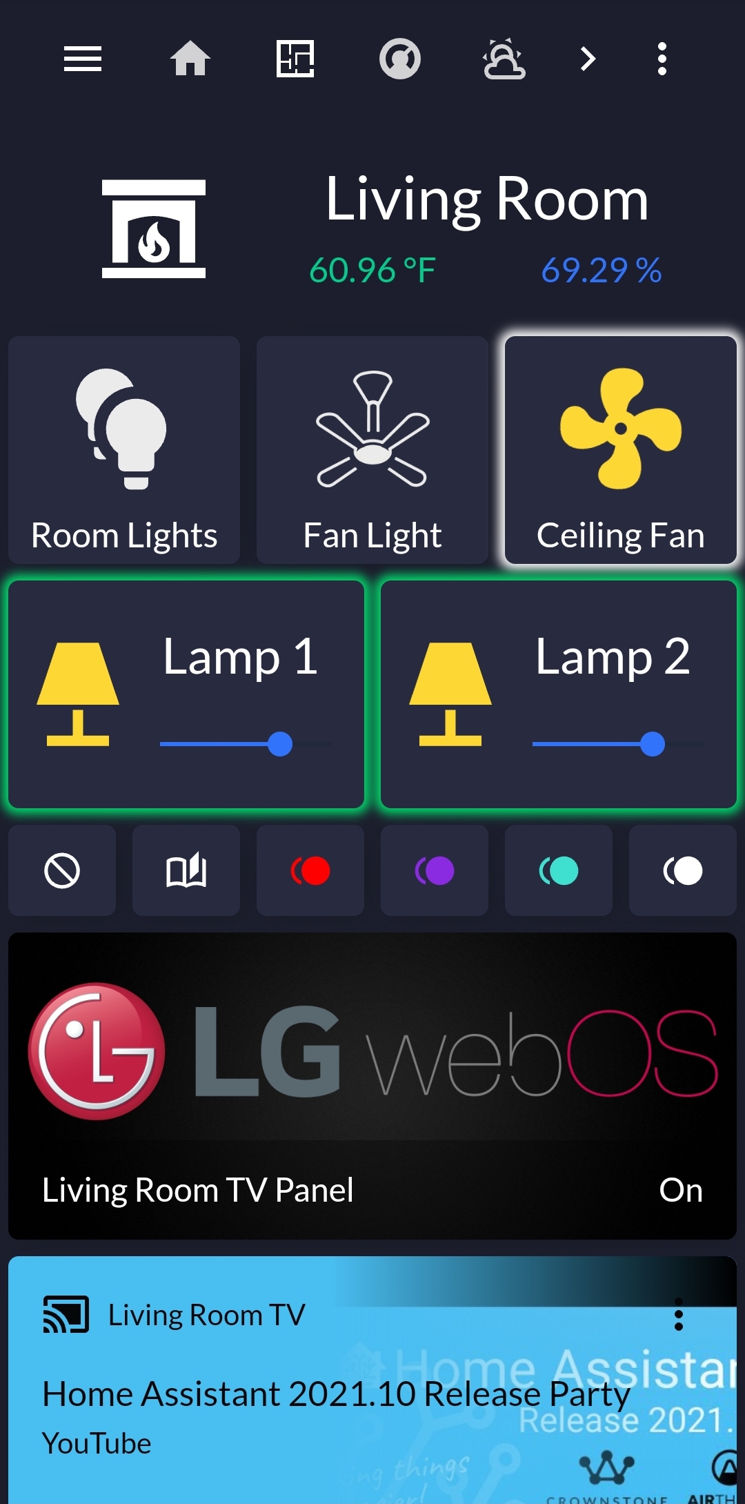 The above screenshots rely heavily on custom-cards/button-card in their design. When using the Custom:Button-Card with this theme, button color behavior can be defined using variables such as var(--base-colors-orange) in your button configuration. These colors are defined in the # Base Color Definitions section of the YuniFi.yaml file. Example: