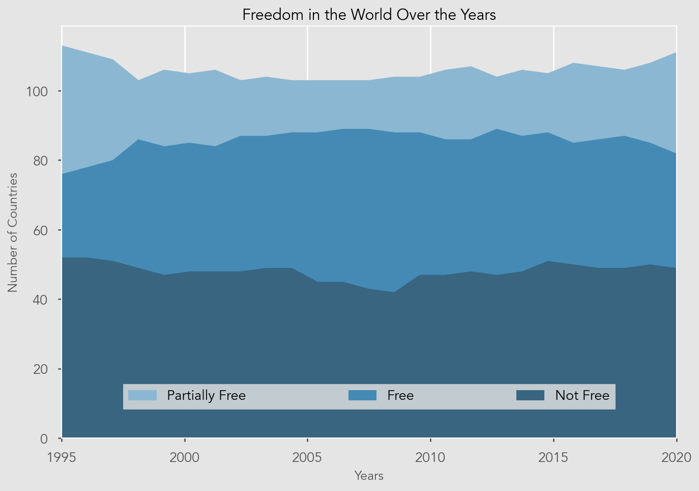 - Show the trend of the number of countries that are in each status over the 26 years
