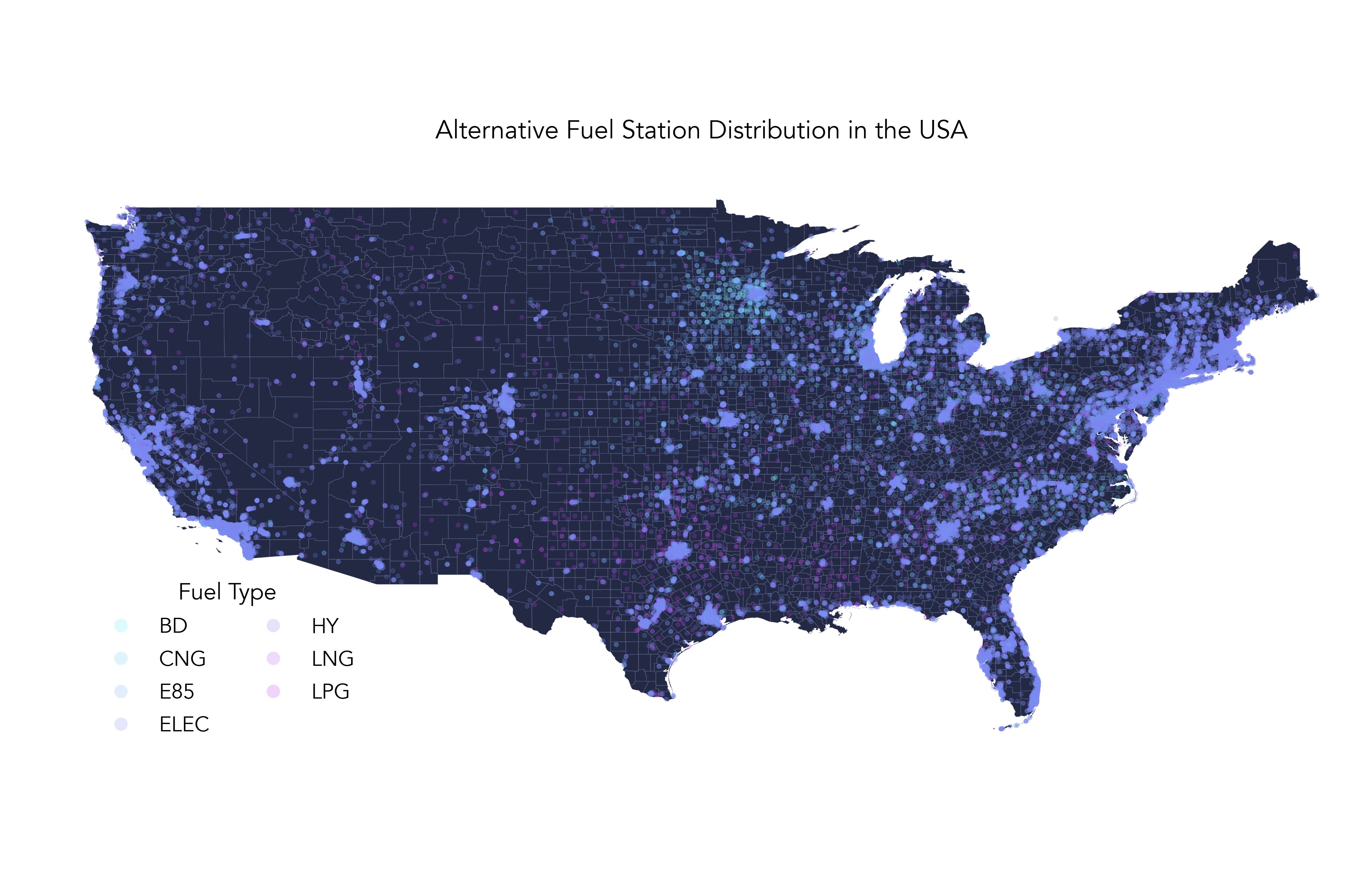 - Map of the US (excluding Alaska and islands) as background with faint county borders