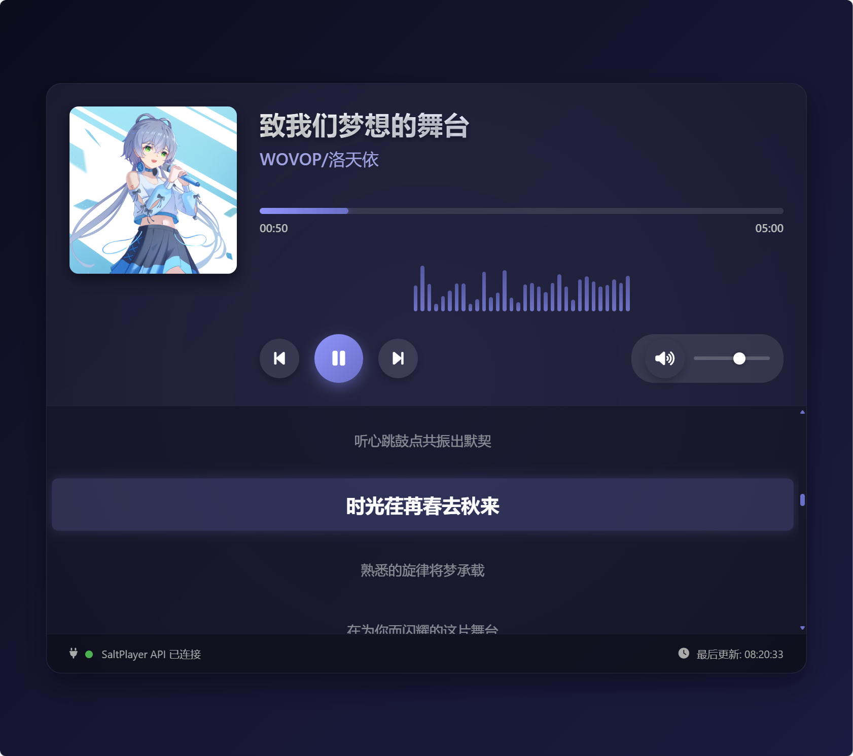 一个适用于 Salt Player For Windows 的桌面歌词插件,提供桌面歌词显示及 HTTP API 控制功能。