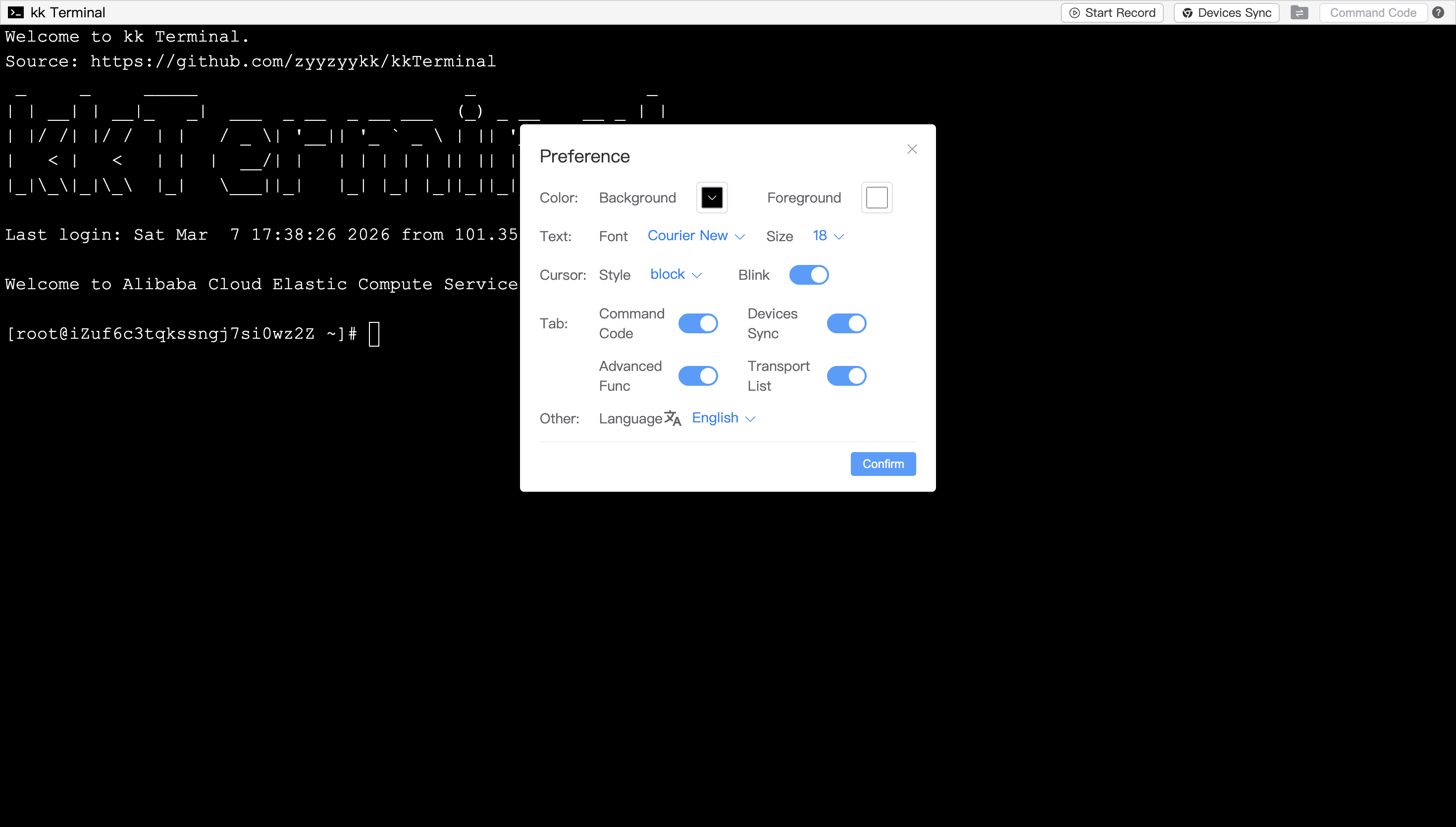 - Support preference settings, such as choosing the terminal background/foreground color, font size, cursor display style, etc